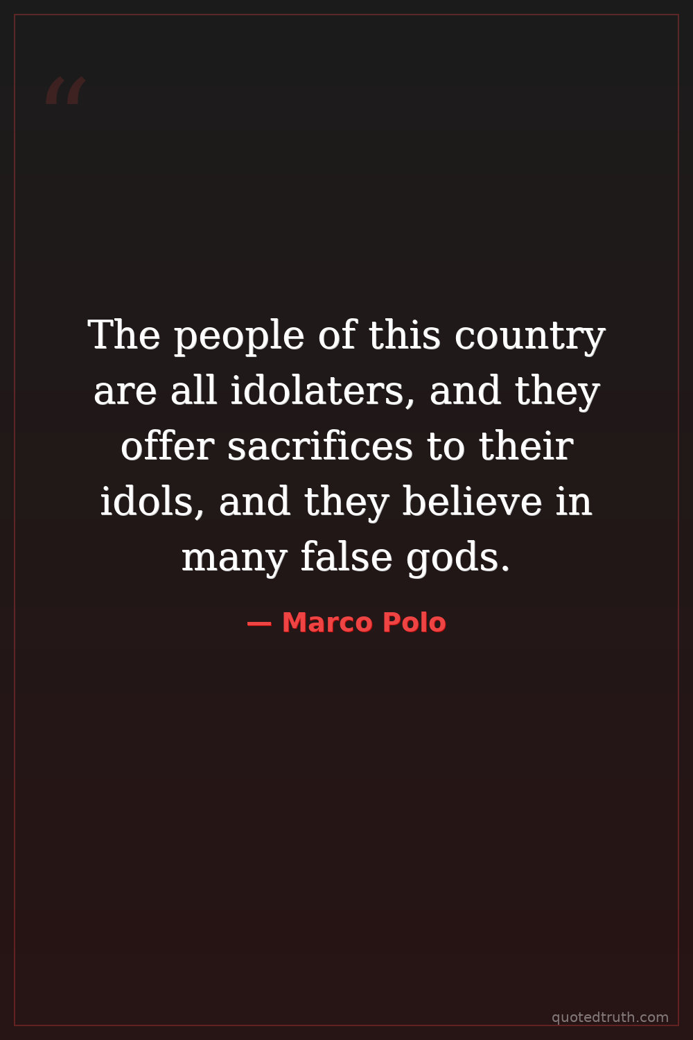 The people of this country are all idolaters, and they offer sacrifices to their idols, and they believe in many false gods.
