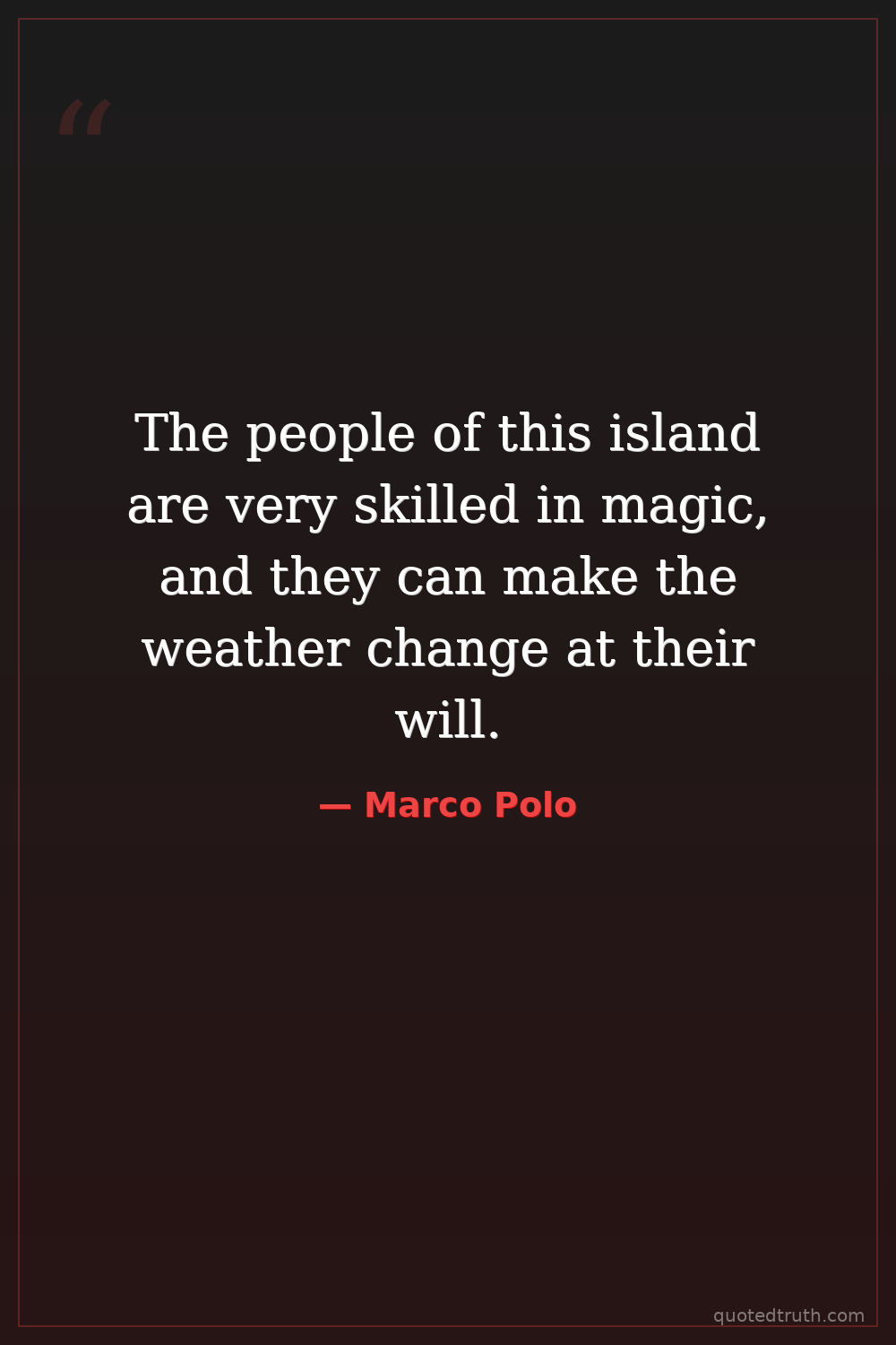 The people of this island are very skilled in magic, and they can make the weather change at their will.