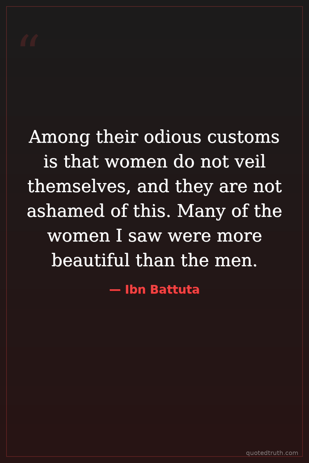 "The women of this country are more beautiful than the men, and they are not veiled."