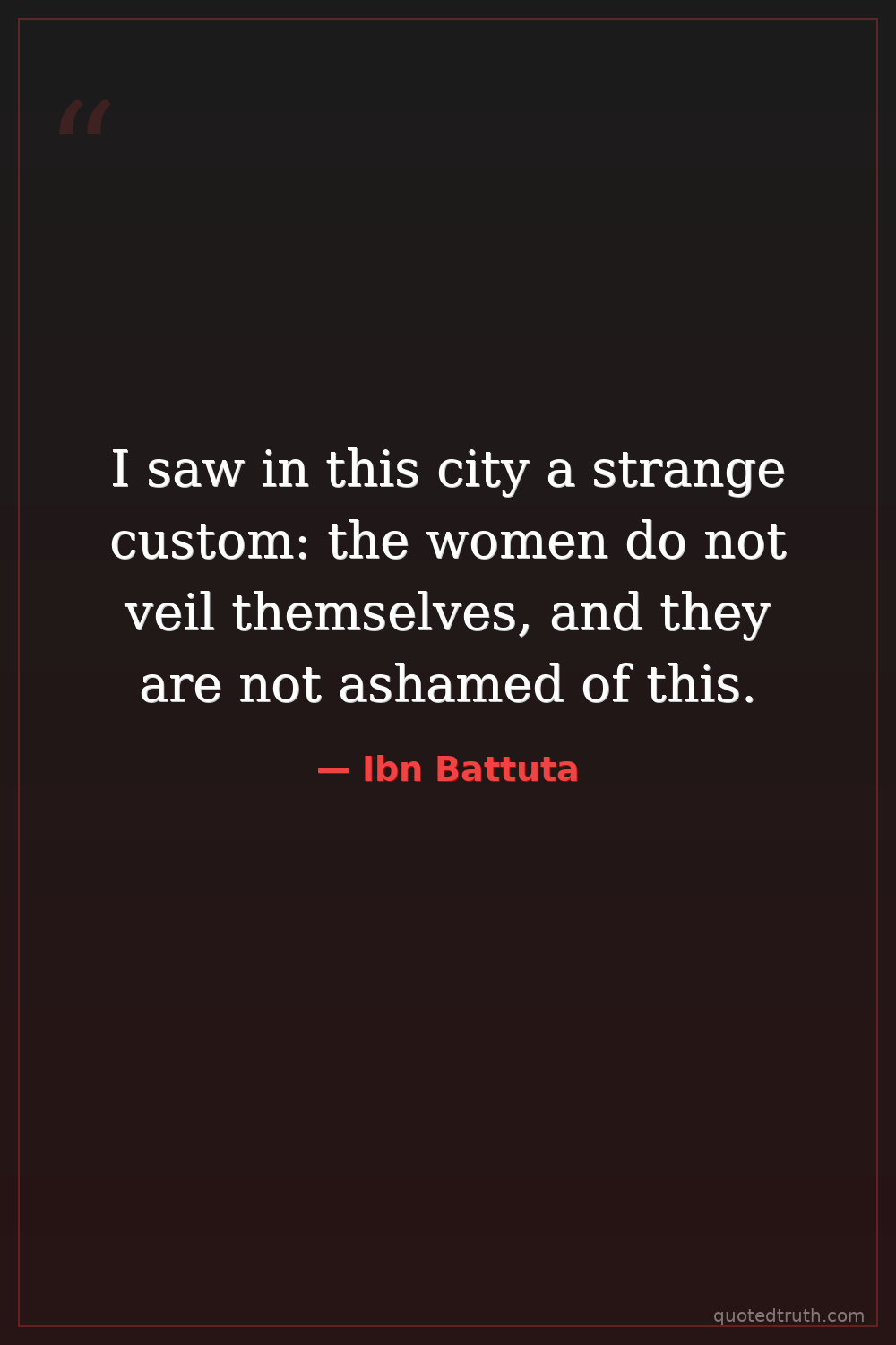 I saw in this city a strange custom: the women do not veil themselves, and they are not ashamed of this.