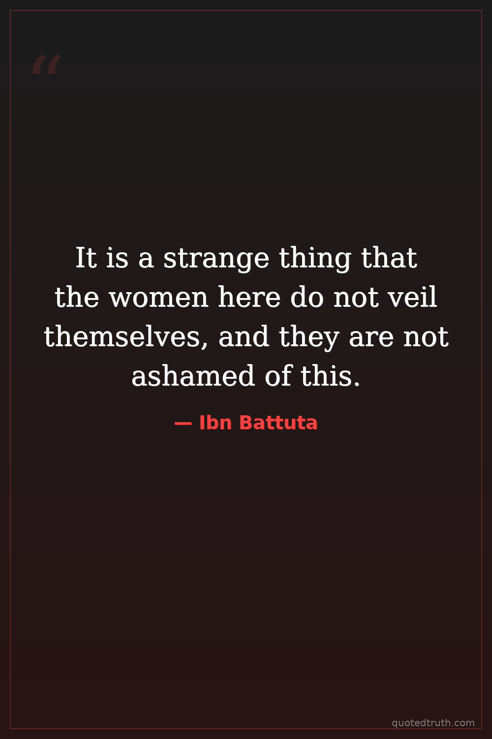 It is a strange thing that the women here do not veil themselves, and they are not ashamed of this.