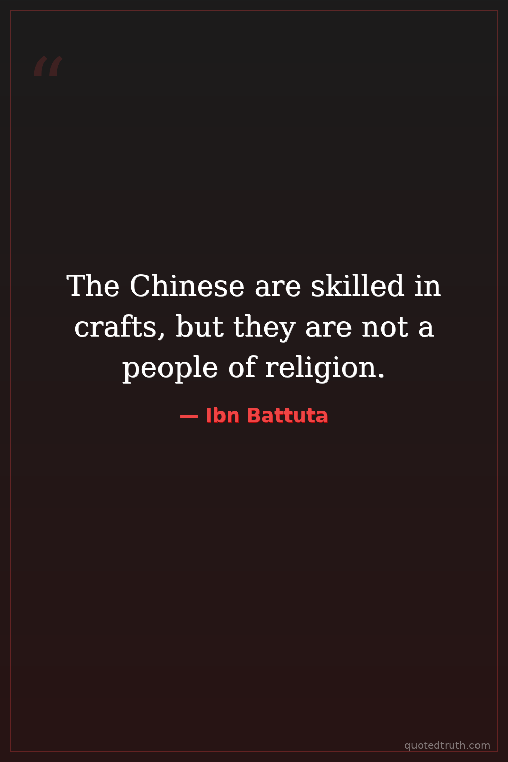 The Chinese are skilled in crafts, but they are not a people of religion.