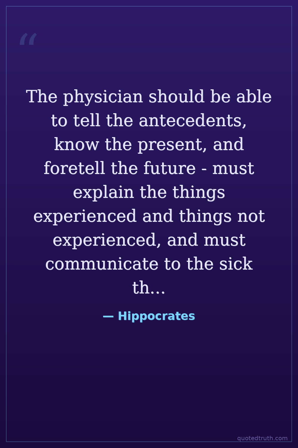 The physician should be able to tell the antecedents, know the present, and foretell the future - must explain the things experienced and things not experienced, and must communicate to the sick the things that are necessary.