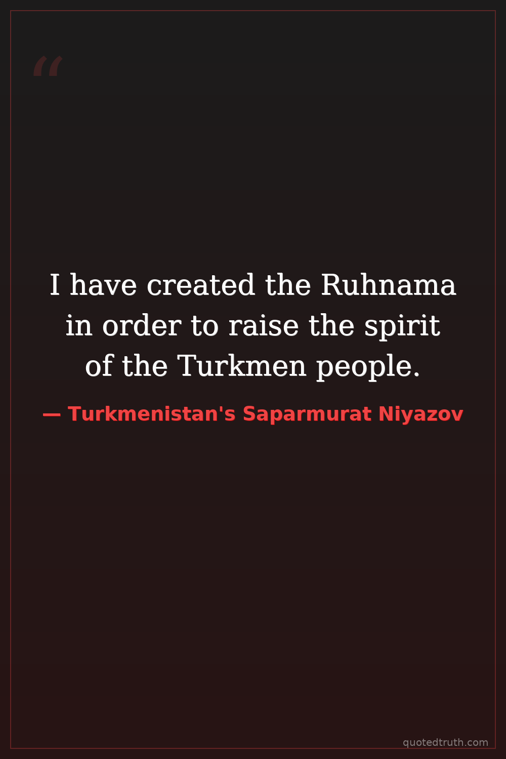 I have created the Ruhnama in order to raise the spirit of the Turkmen people.