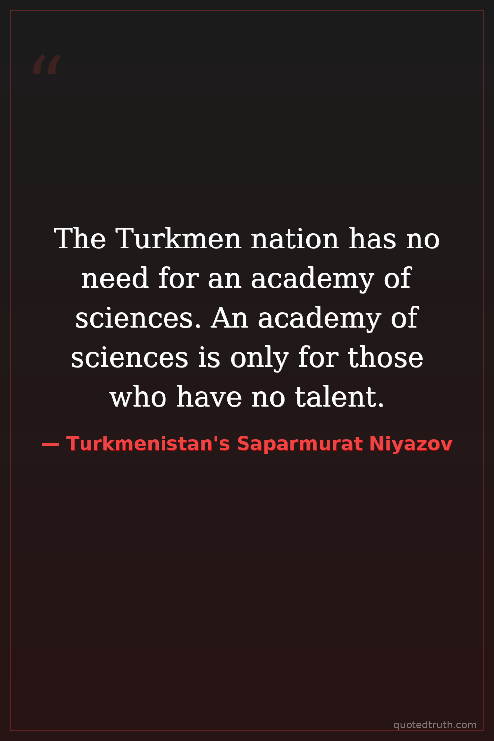The Turkmen nation has no need for an academy of sciences. An academy of sciences is only for those who have no talent.