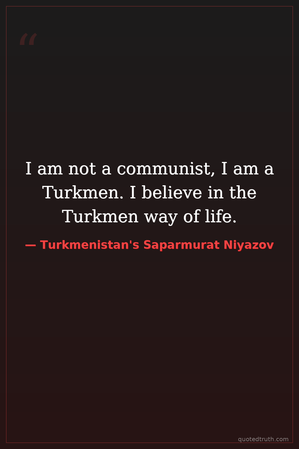 I am not a communist, I am a Turkmen. I believe in the Turkmen way of life.