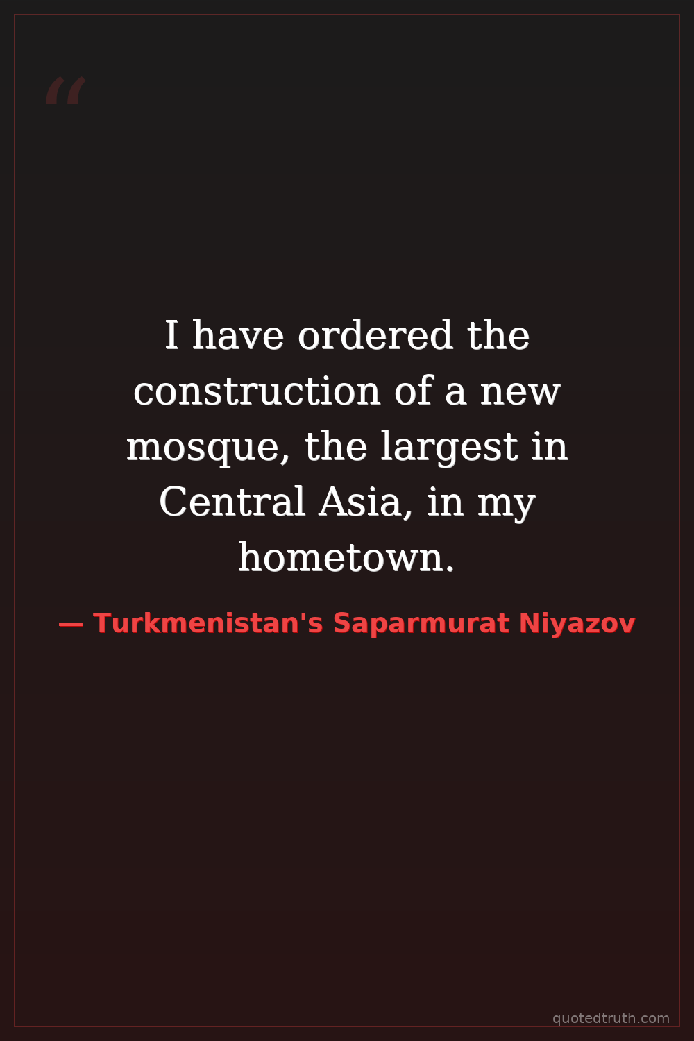 I have ordered the construction of a new mosque, the largest in Central Asia, in my hometown.