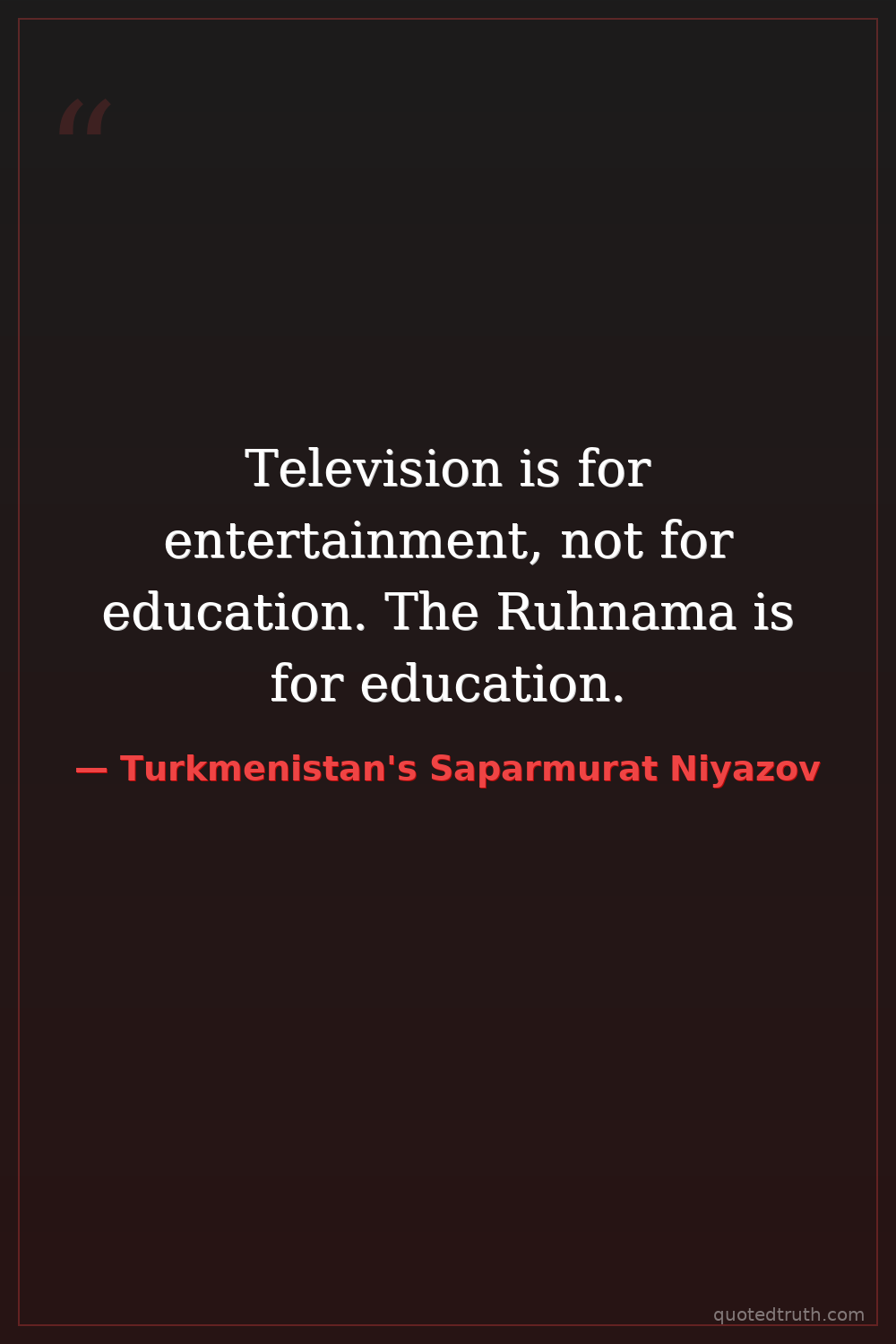 Television is for entertainment, not for education. The Ruhnama is for education.