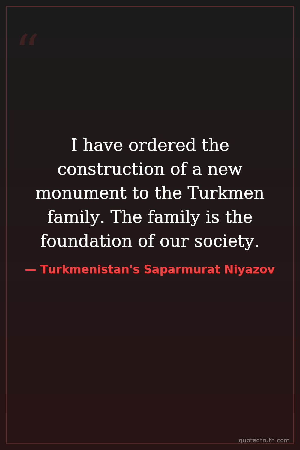 I have ordered the construction of a new monument to the Turkmen family. The family is the foundation of our society.