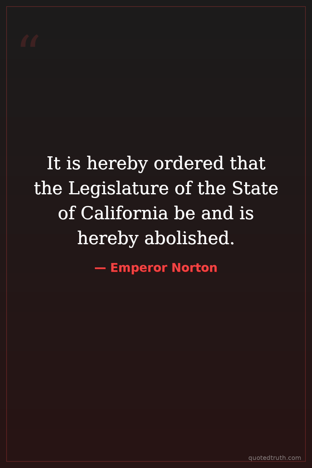 It is hereby ordered that the Legislature of the State of California be and is hereby abolished.