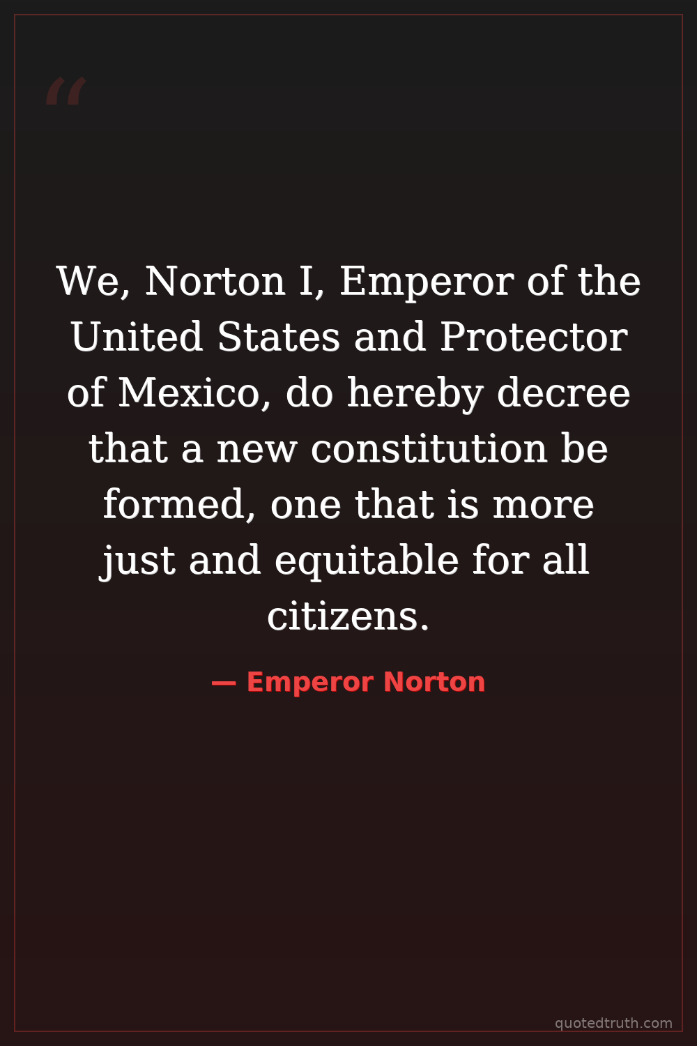 We, Norton I, Emperor of the United States and Protector of Mexico, do hereby decree that a new constitution be formed, one that is more just and equitable for all citizens.