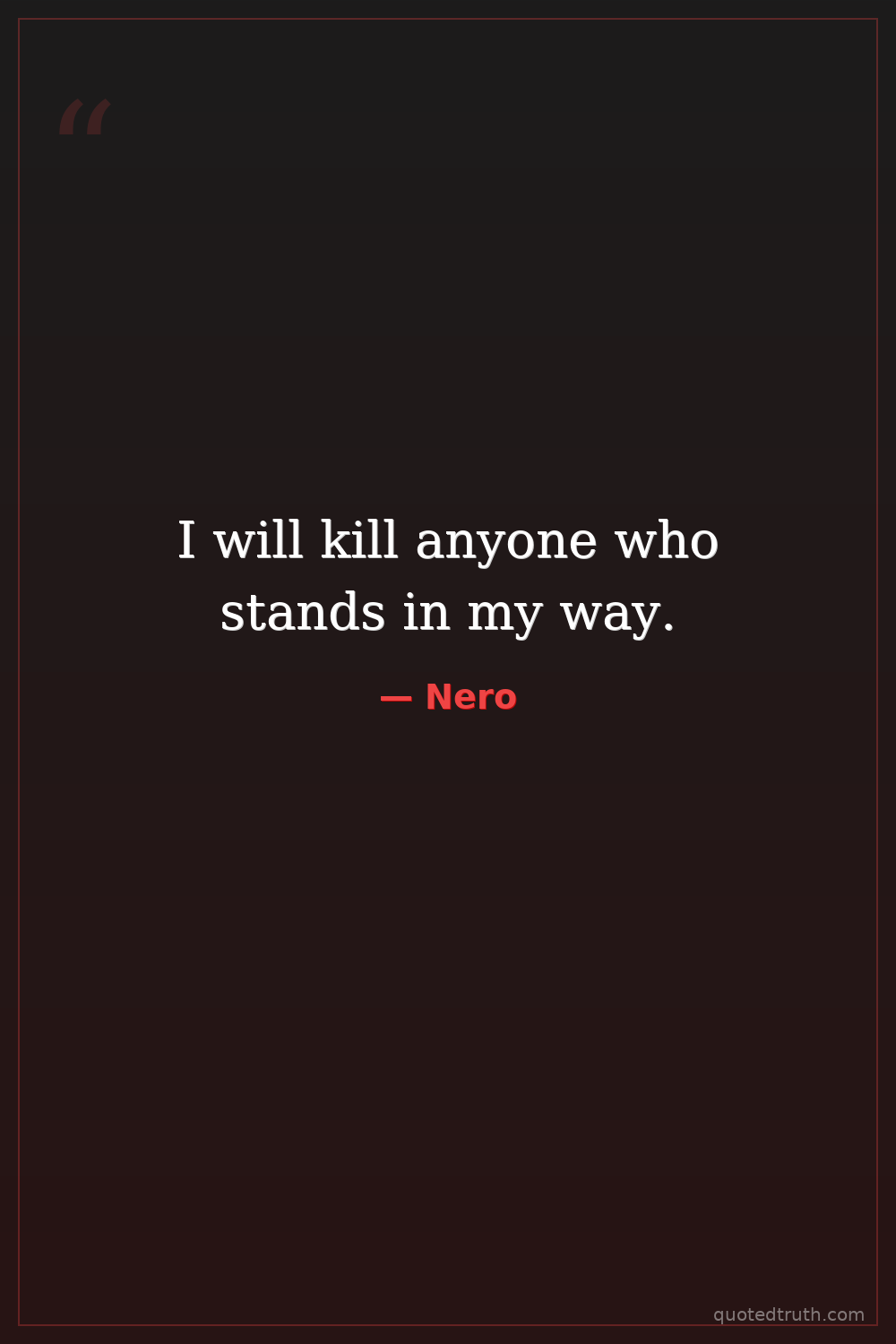I will kill anyone who stands in my way.