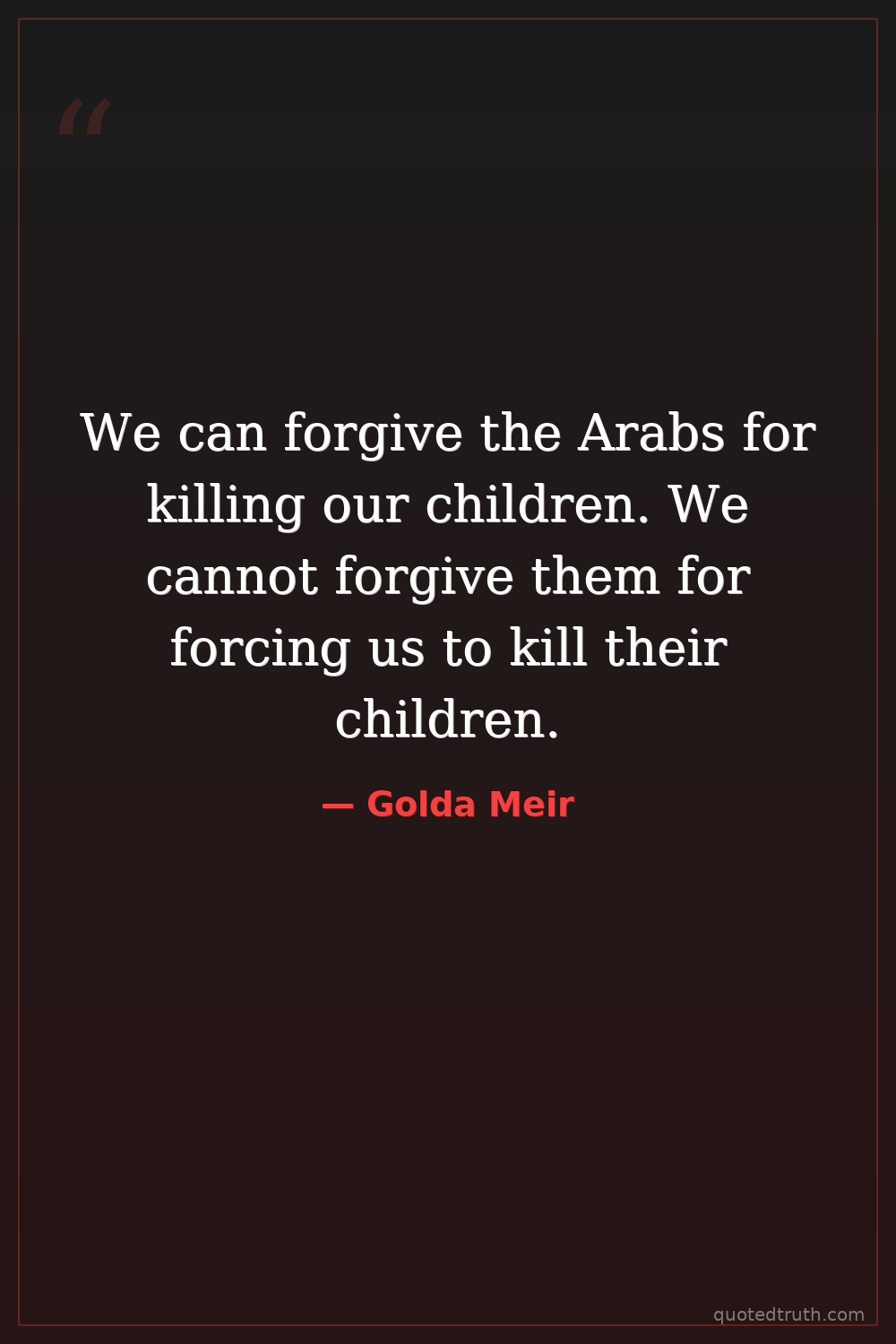 We can forgive the Arabs for killing our children. We cannot forgive them for forcing us to kill their children.