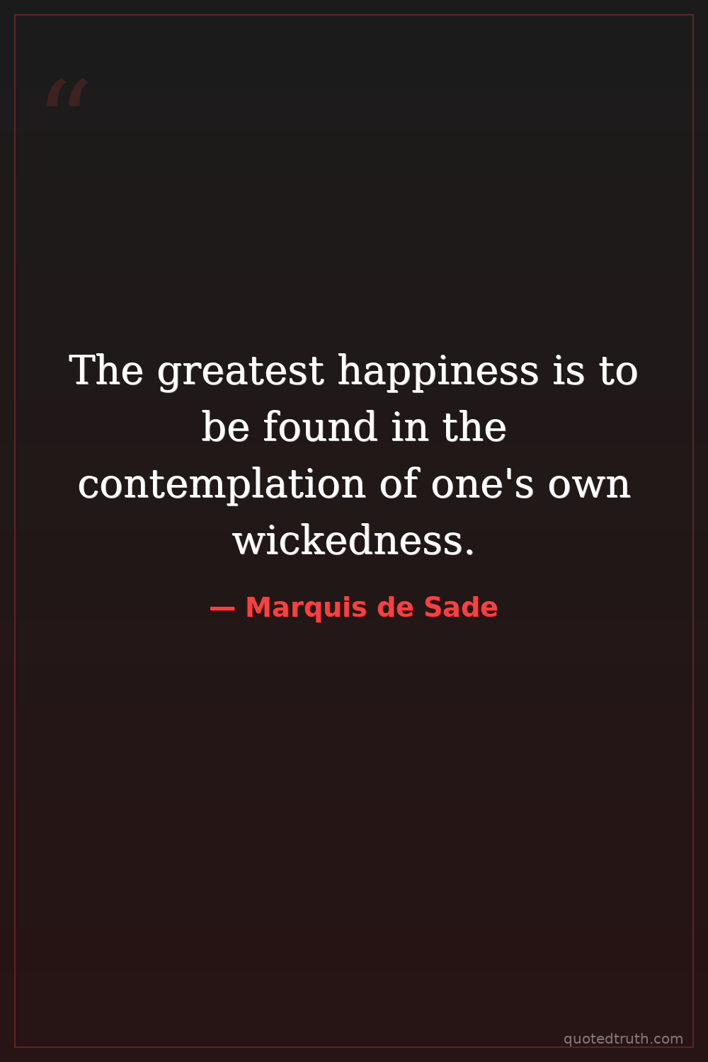 The greatest happiness is to be found in the contemplation of one's own wickedness.