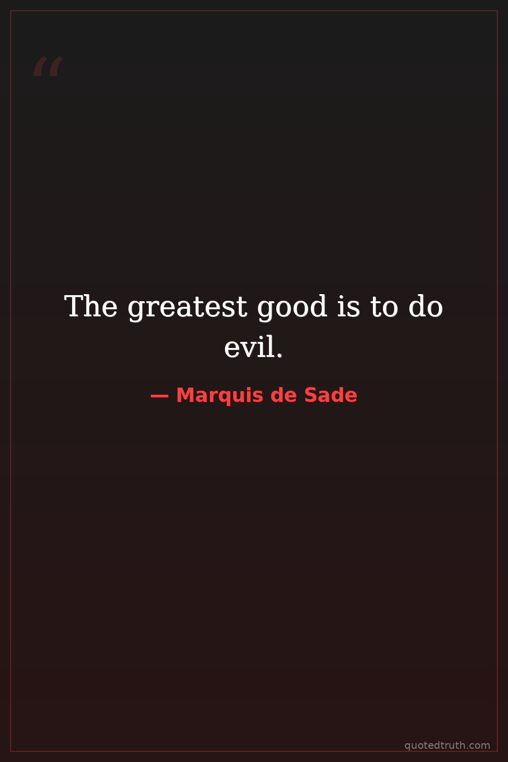 The greatest good is to do evil.