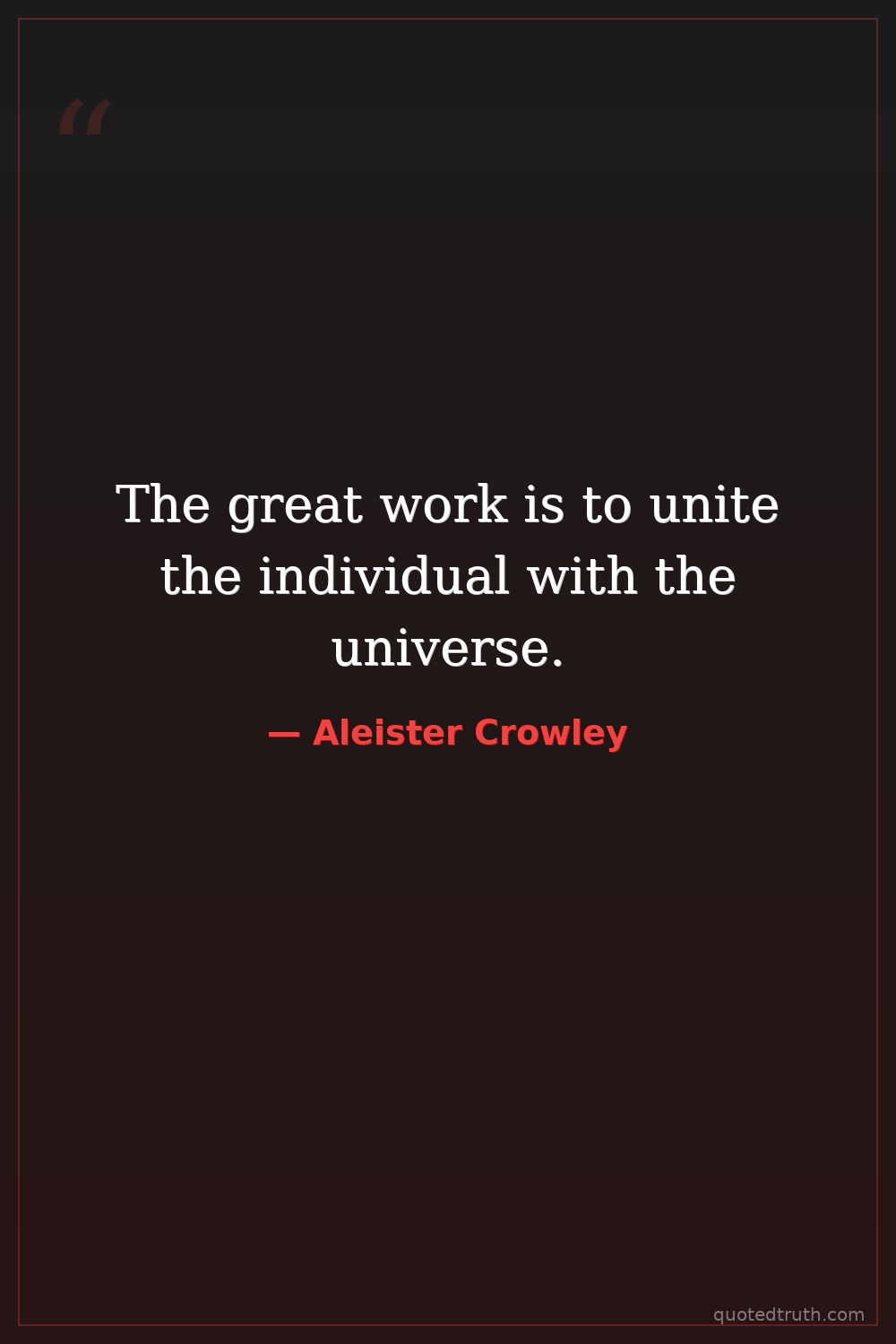 The great work is to unite the individual with the universe.