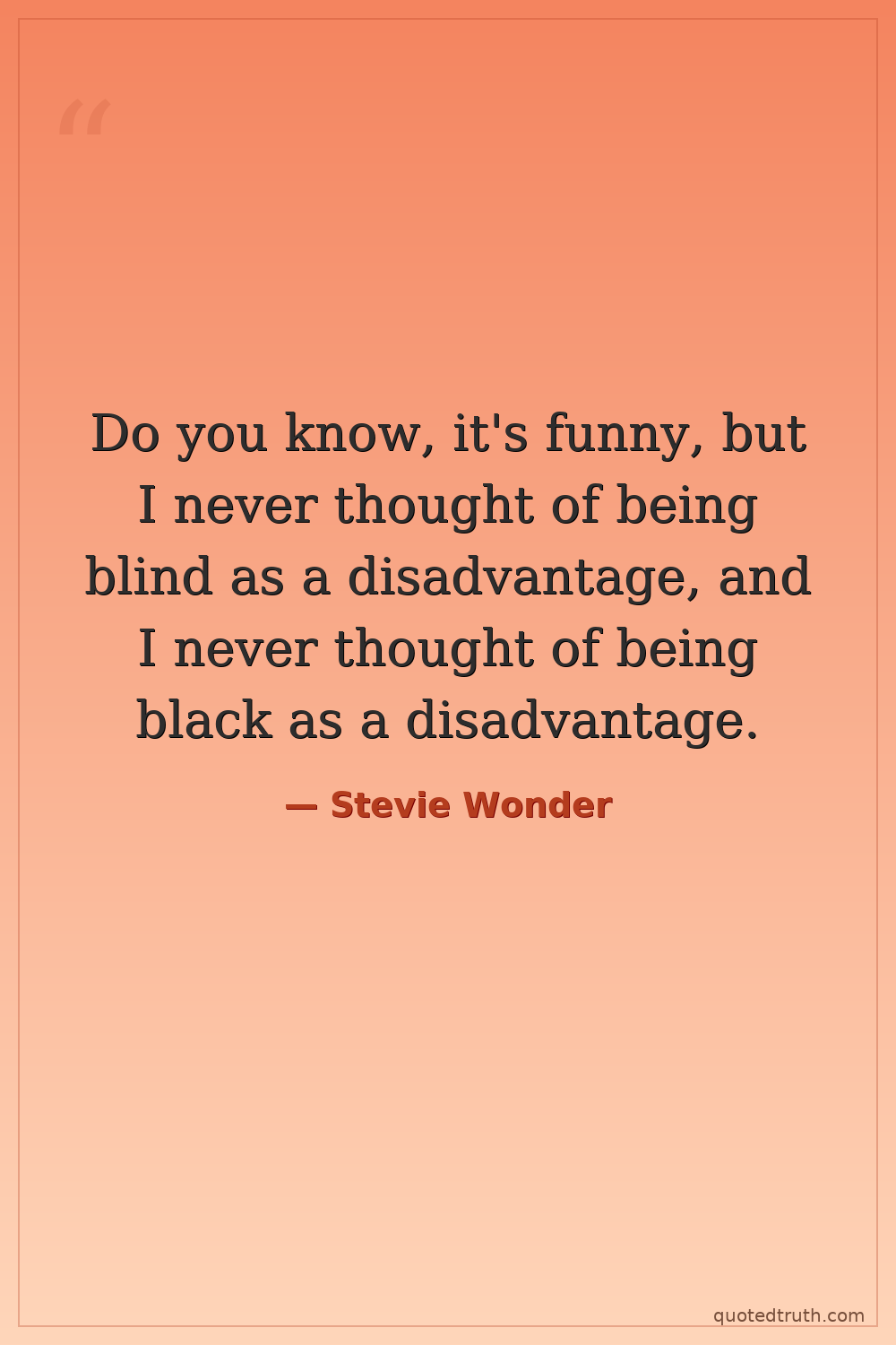 Do you know, it's funny, but I never thought of being blind as a disadvantage, and I never thought of being black as a disadvantage.