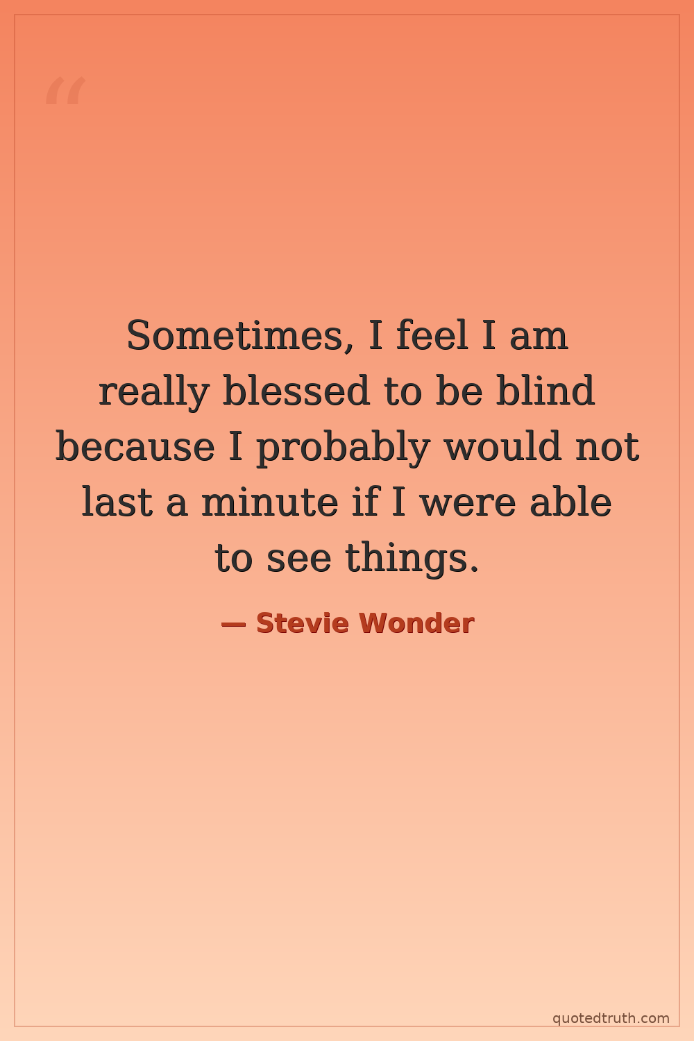 Sometimes, I feel I am really blessed to be blind because I probably would not last a minute if I were able to see things.