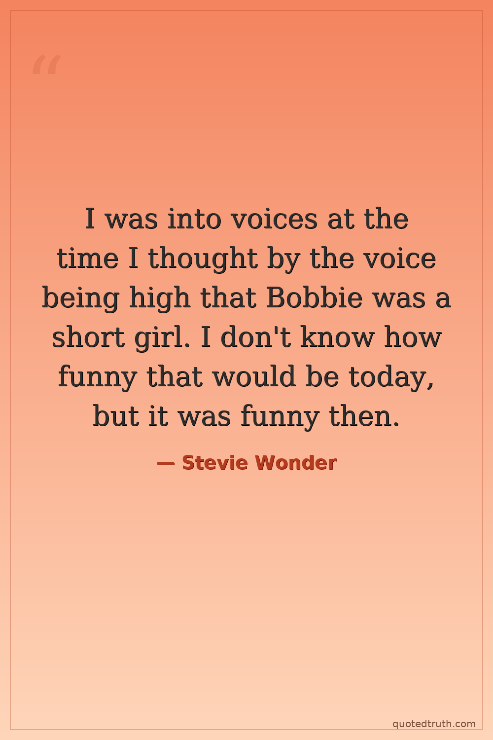 I was into voices at the time I thought by the voice being high that Bobbie was a short girl. I don't know how funny that would be today, but it was funny then.