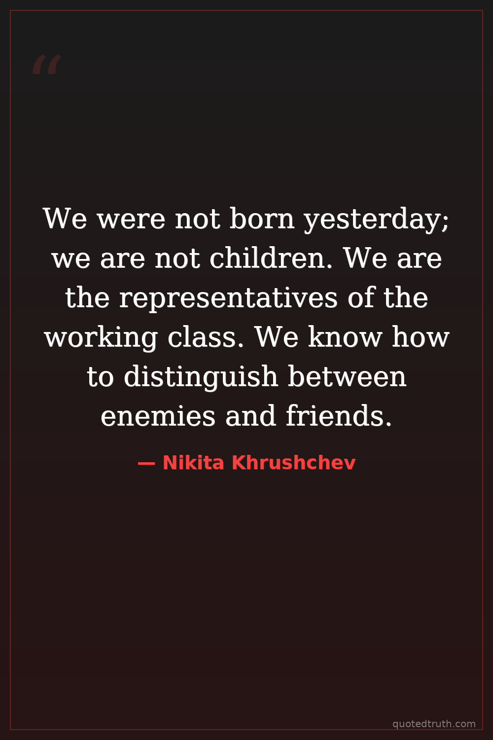 We were not born yesterday; we are not children. We are the representatives of the working class. We know how to distinguish between enemies and friends.