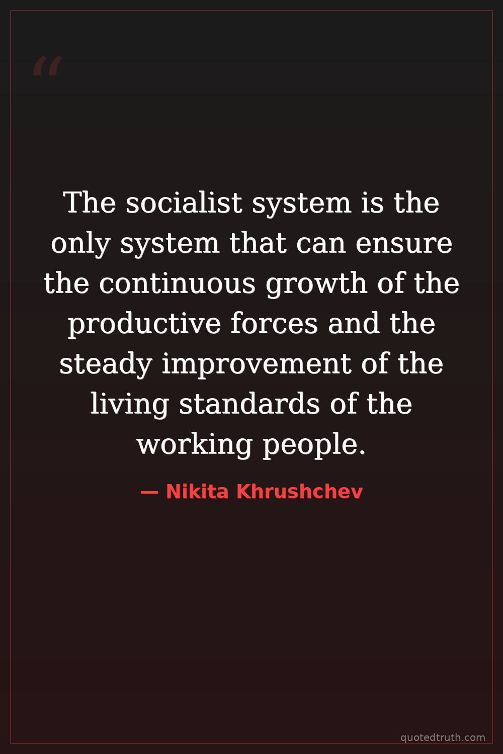 The socialist system is the only system that can ensure the continuous growth of the productive forces and the steady improvement of the living standards of the working people.