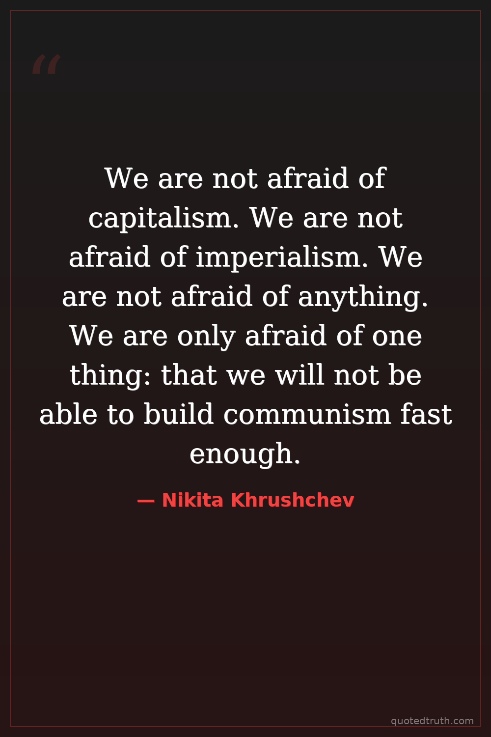 We are not afraid of capitalism. We are not afraid of imperialism. We are not afraid of anything. We are only afraid of one thing: that we will not be able to build communism fast enough.