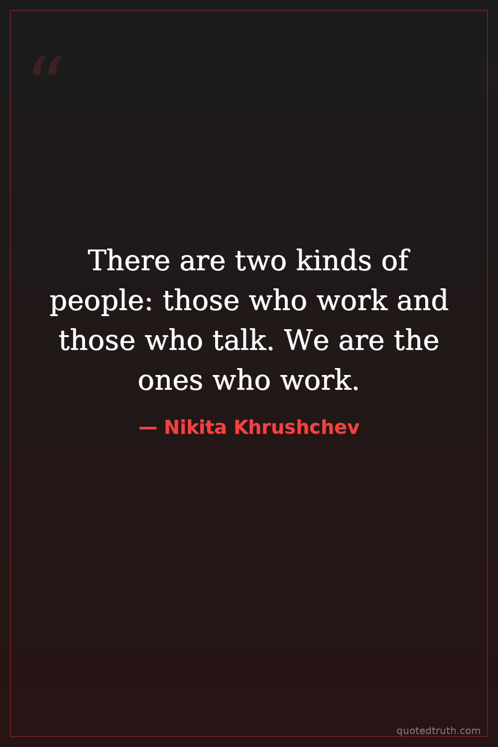 There are two kinds of people: those who work and those who talk. We are the ones who work.