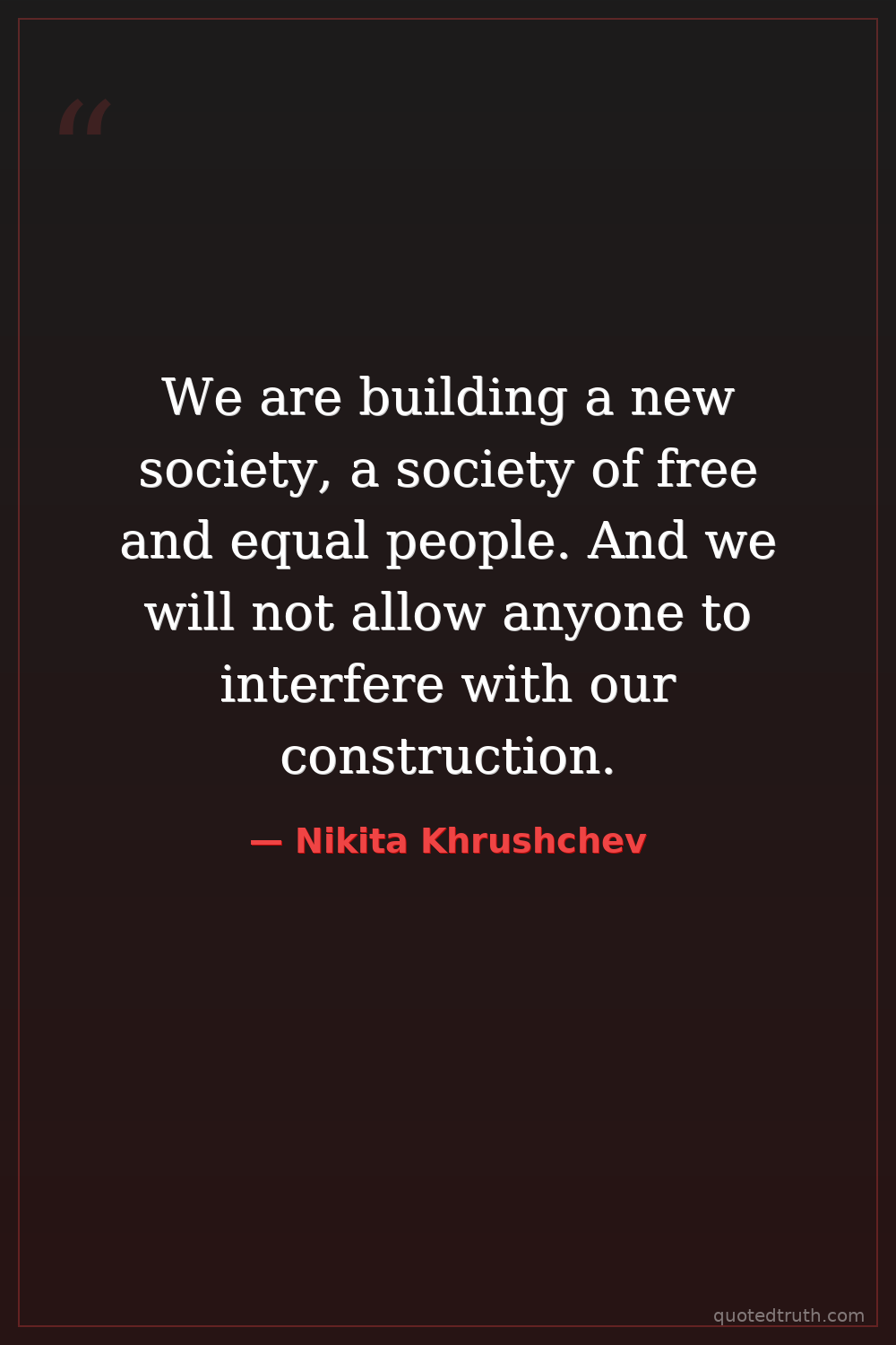 We are building a new society, a society of free and equal people. And we will not allow anyone to interfere with our construction.