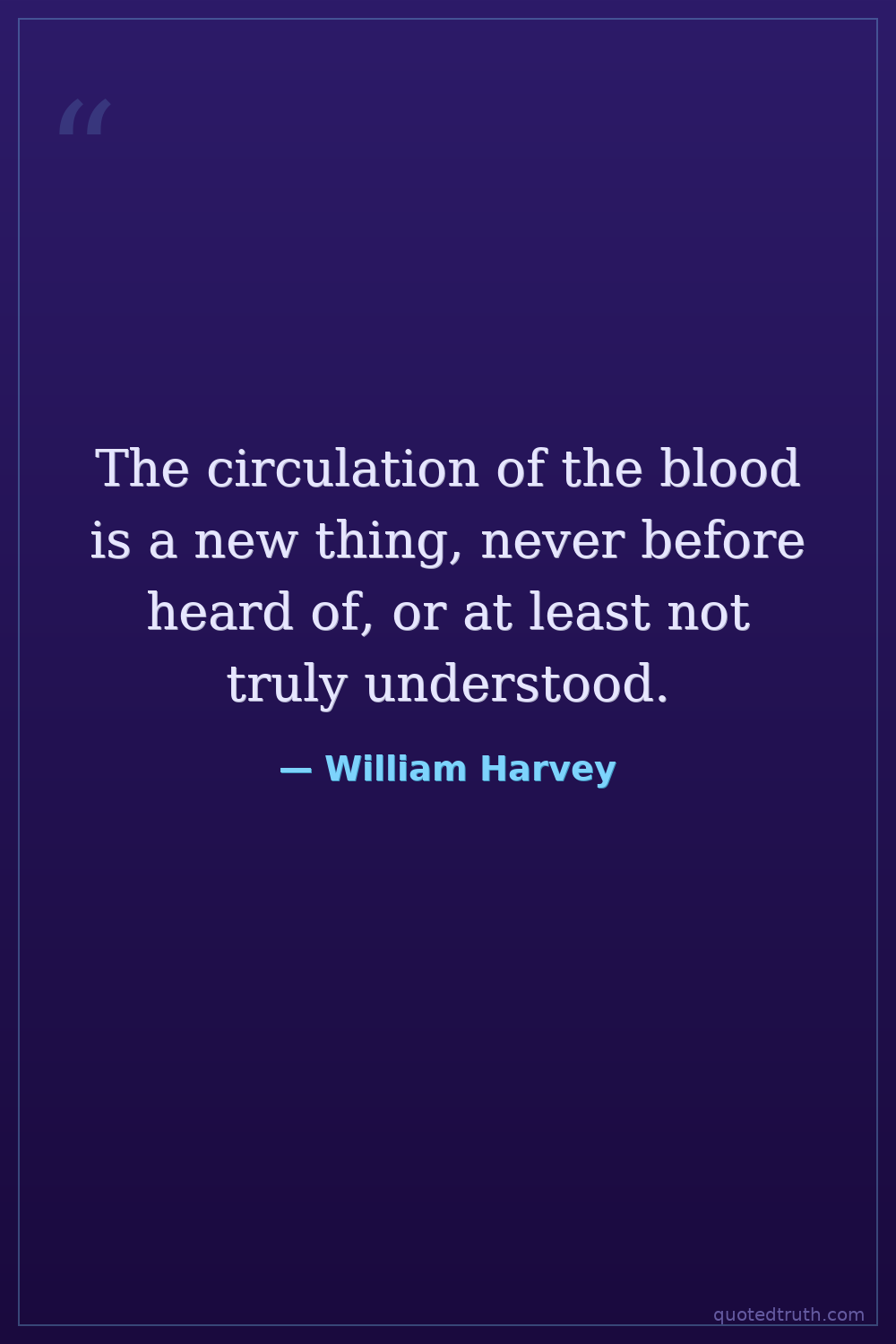The circulation of the blood is a new thing, never before heard of, or at least not truly understood.