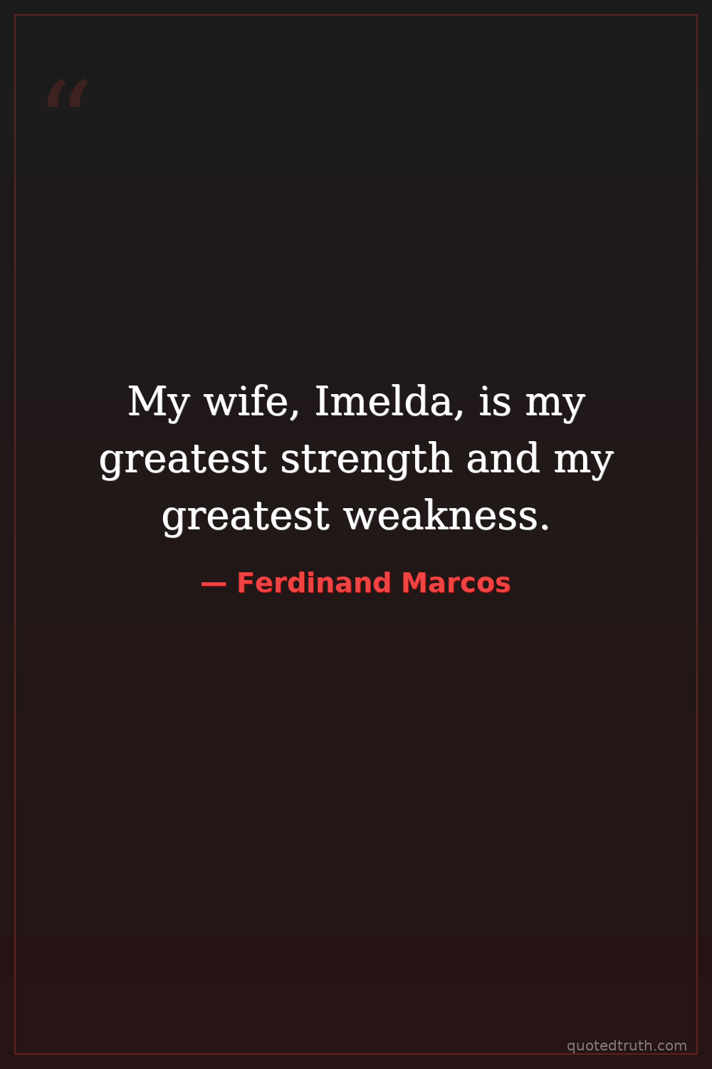 My wife, Imelda, is my greatest strength and my greatest weakness.