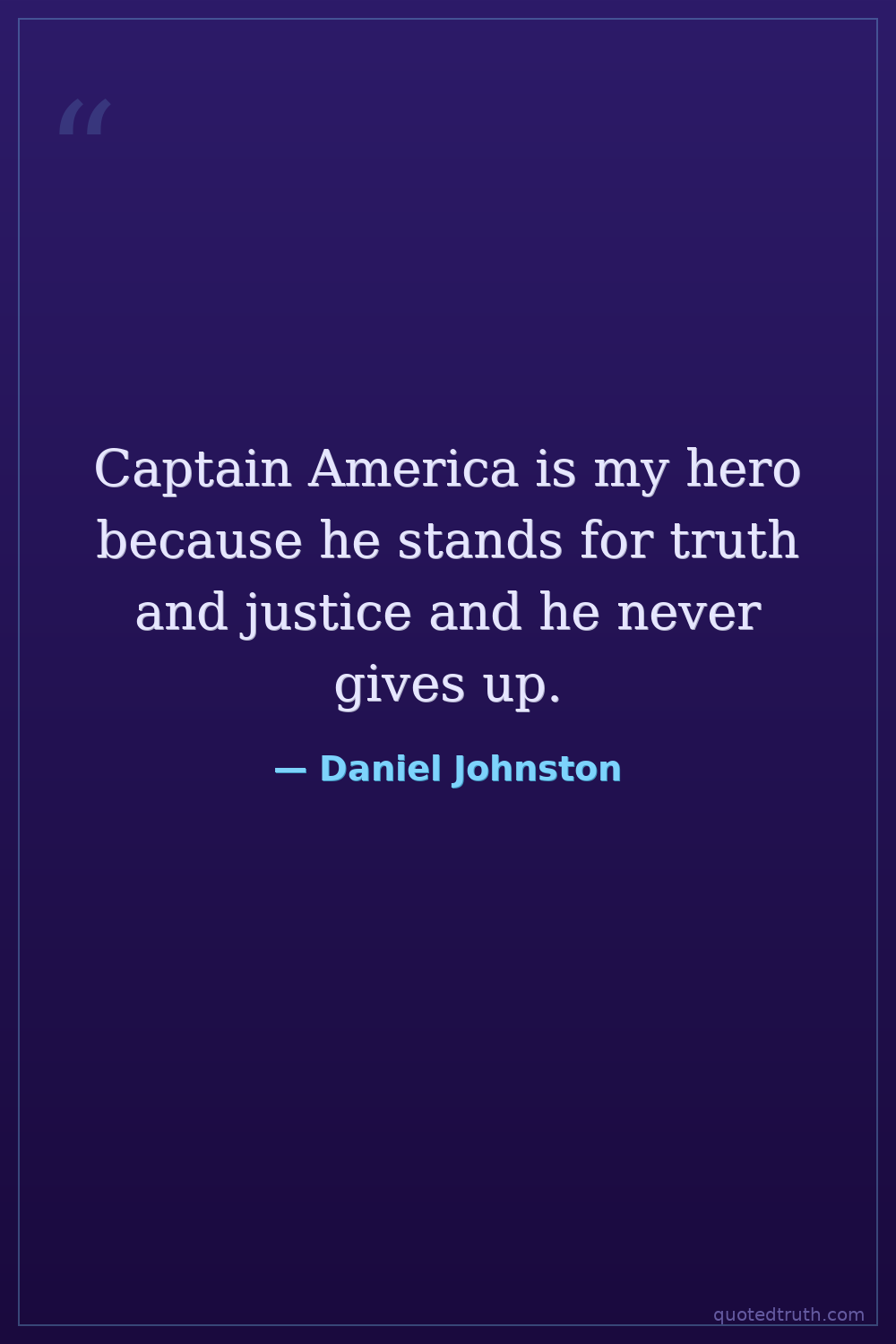 Captain America is my hero because he stands for truth and justice and he never gives up.