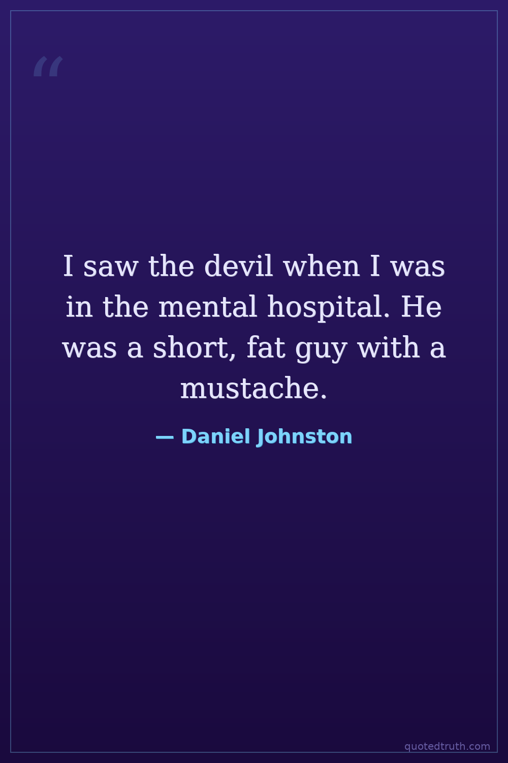 I saw the devil when I was in the mental hospital. He was a short, fat guy with a mustache.