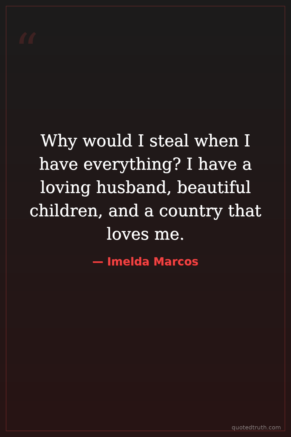 Why would I steal when I have everything? I have a loving husband, beautiful children, and a country that loves me.