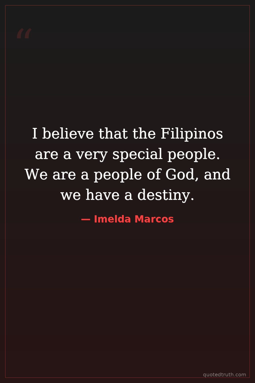 I believe that the Filipinos are a very special people. We are a people of God, and we have a destiny.