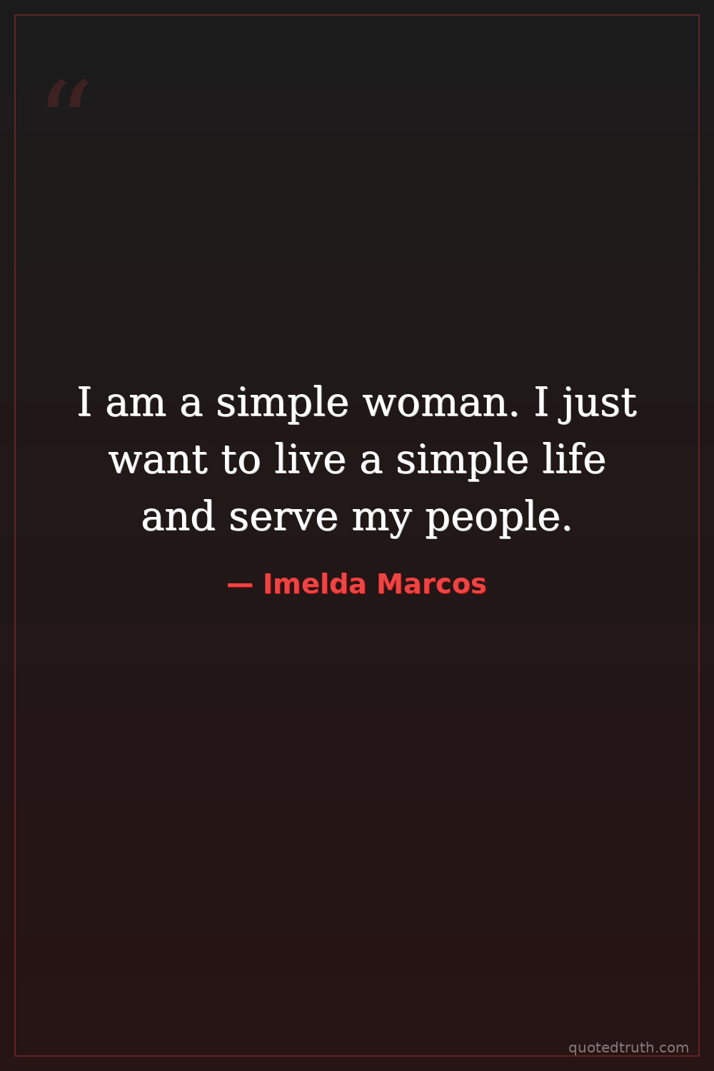 I am a simple woman. I just want to live a simple life and serve my people.