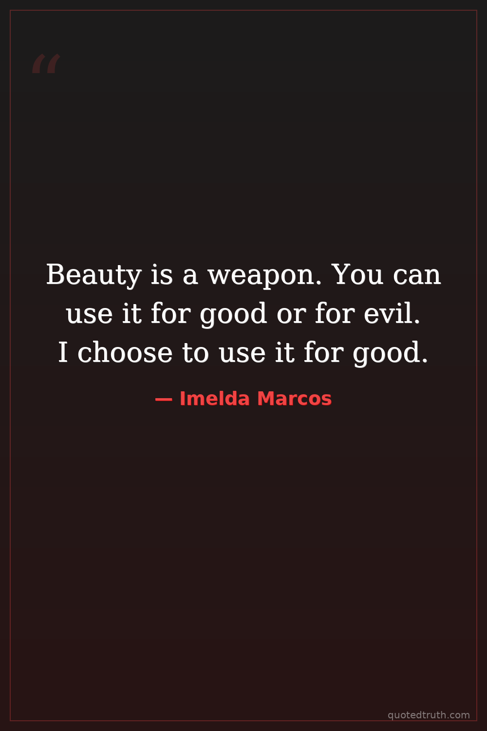 Beauty is a weapon. You can use it for good or for evil. I choose to use it for good.