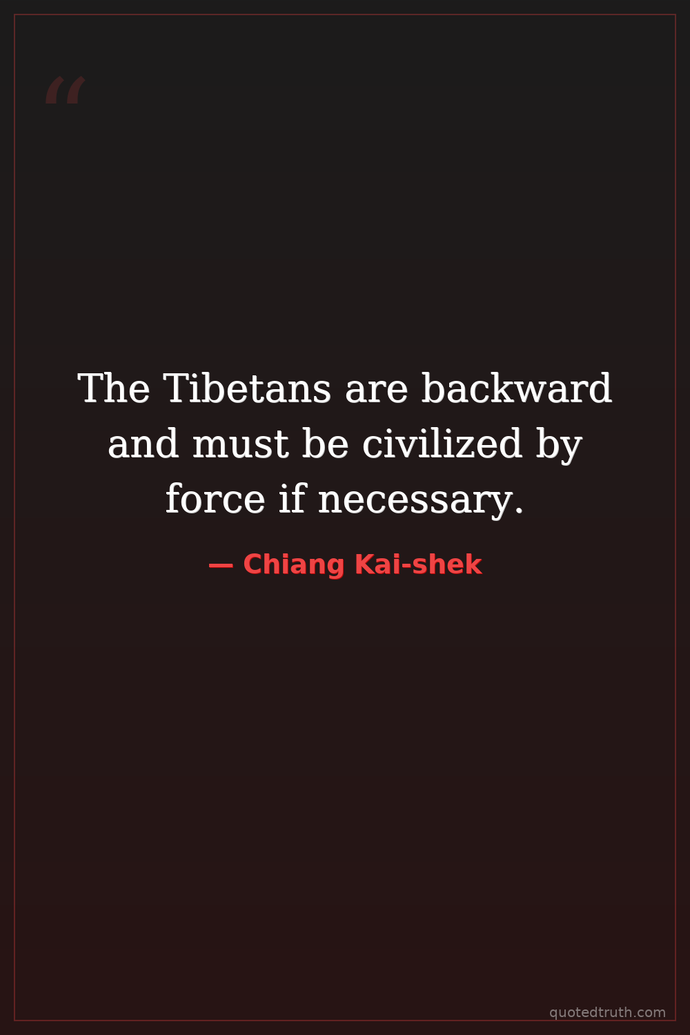 The Tibetans are backward and must be civilized by force if necessary.