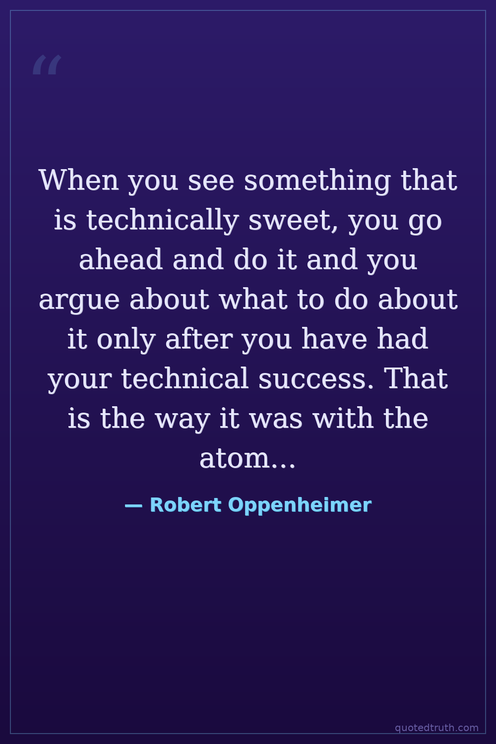 When you see something that is technically sweet, you go ahead and do it and you argue about what to do about it only after you have had your technical success. That is the way it was with the atomic bomb.