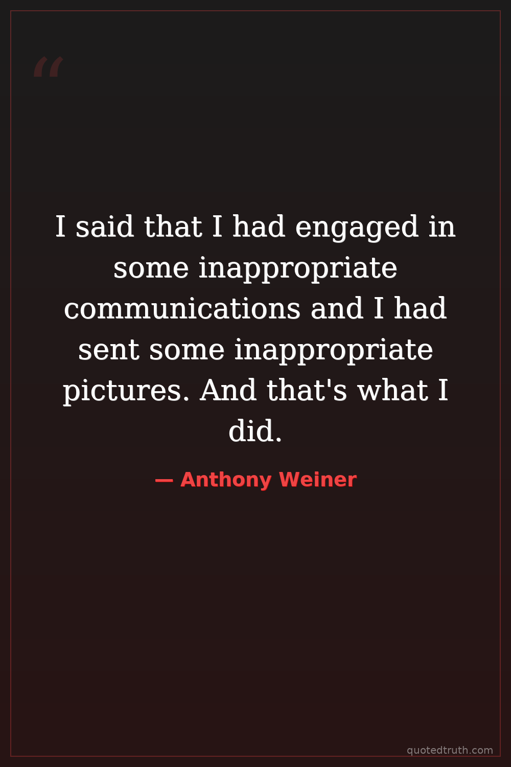 I said that I had engaged in some inappropriate communications and I had sent some inappropriate pictures. And that's what I did.
