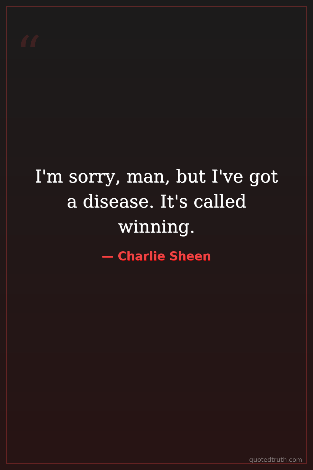 I'm sorry, man, but I've got a disease. It's called winning.