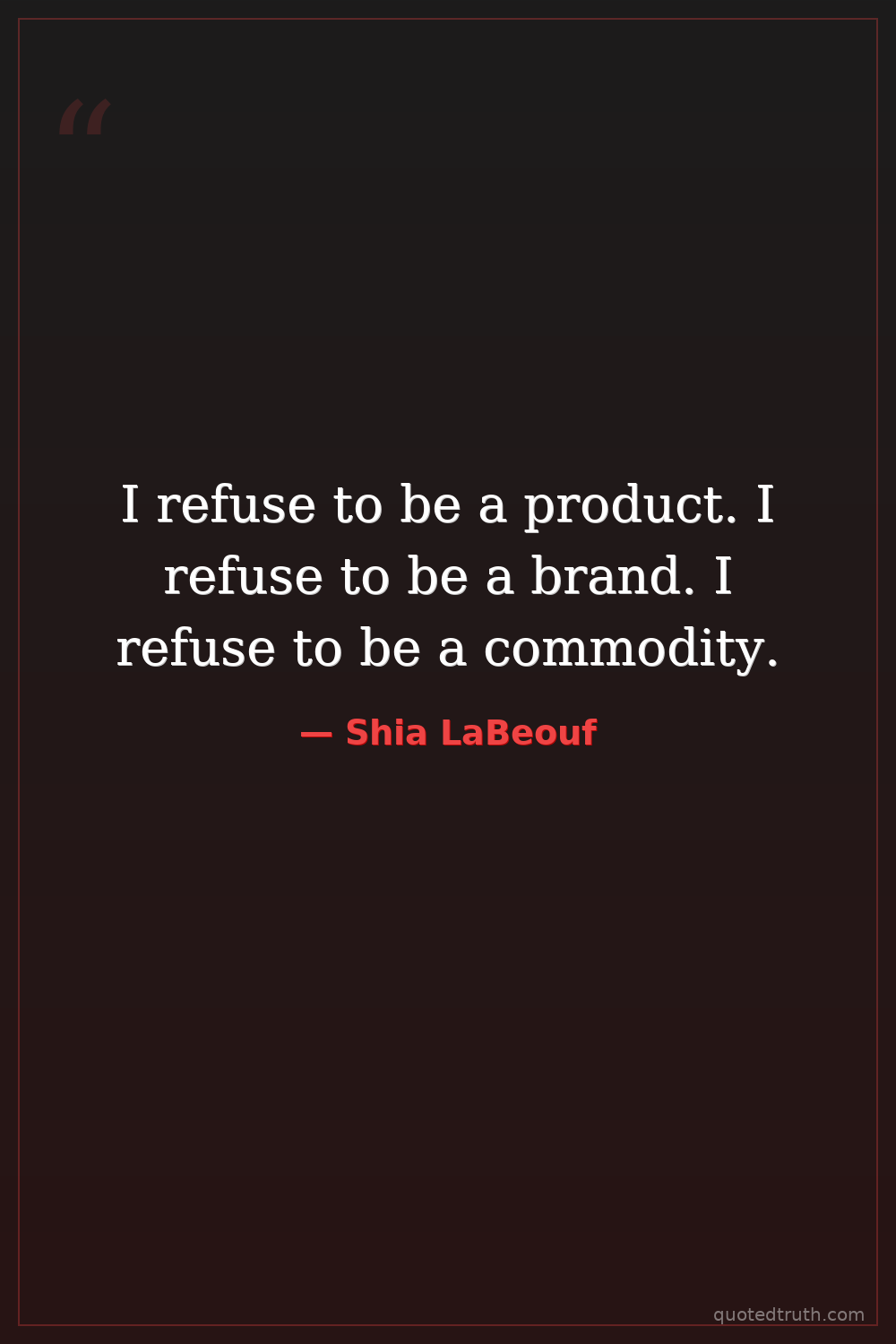 I refuse to be a product. I refuse to be a brand. I refuse to be a commodity.