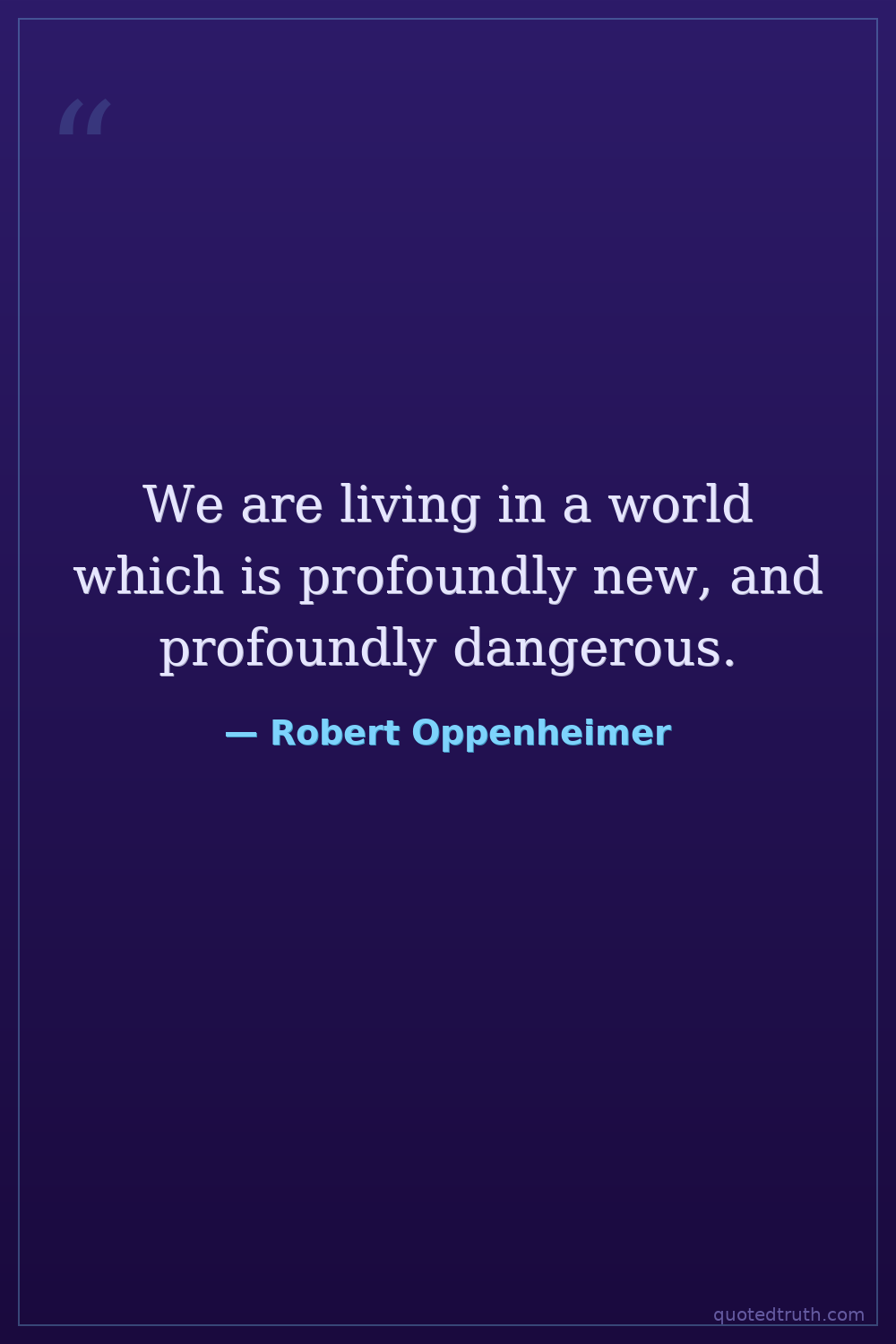 We are living in a world which is profoundly new, and profoundly dangerous.