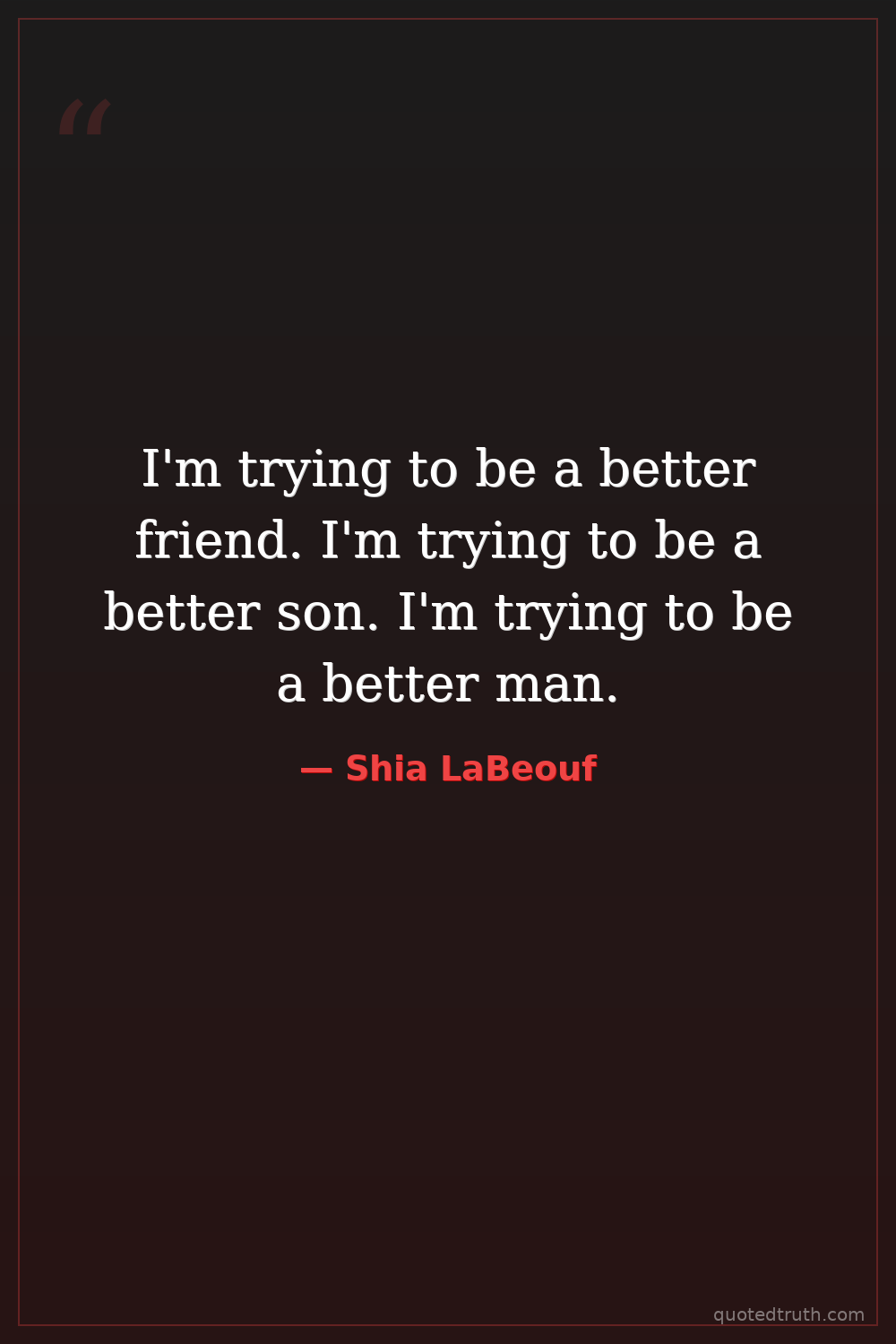 I'm trying to be a better friend. I'm trying to be a better son. I'm trying to be a better man.