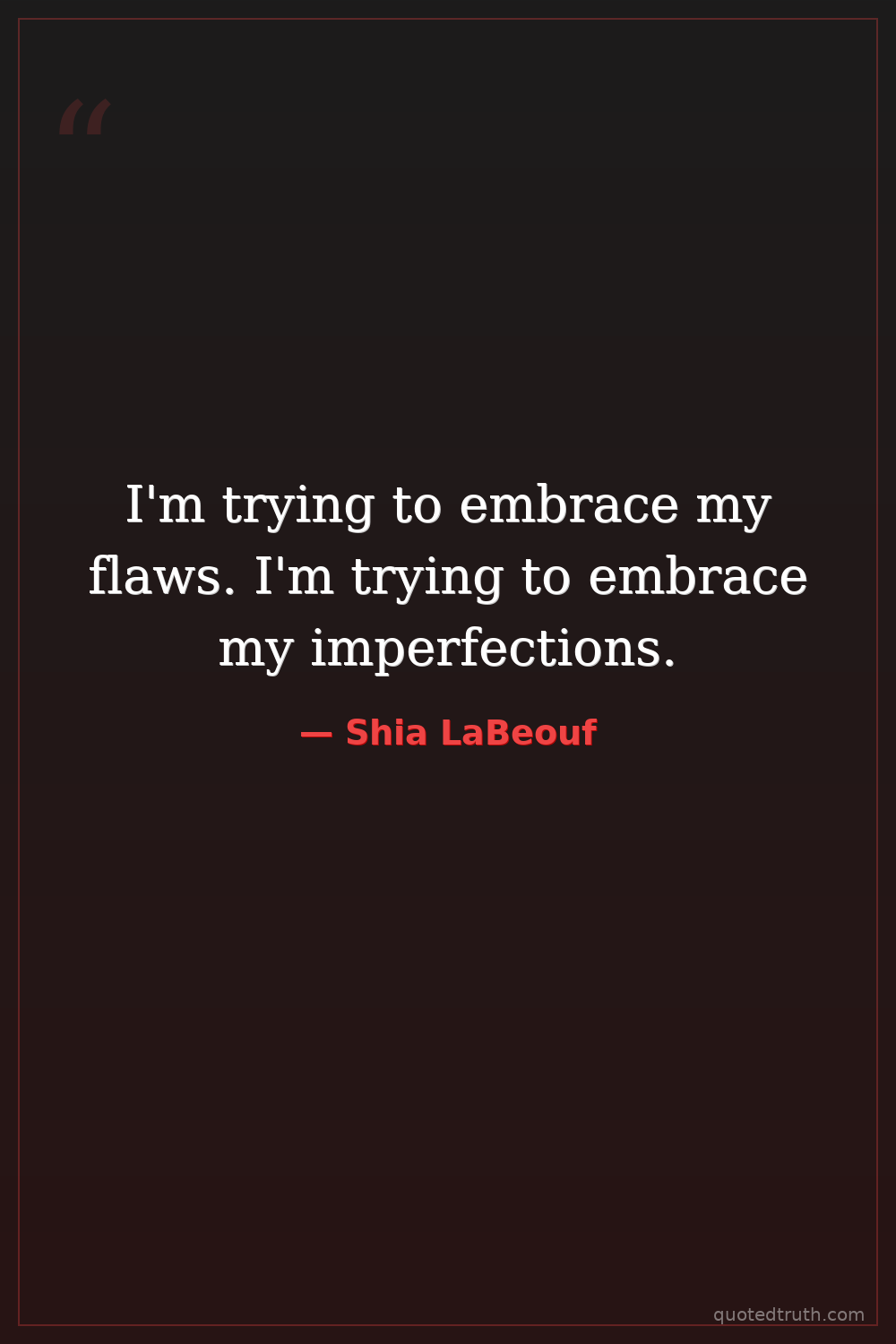 I'm trying to embrace my flaws. I'm trying to embrace my imperfections.