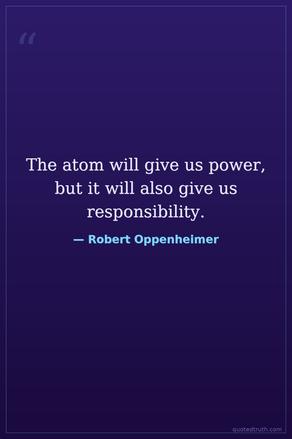 The atom will give us power, but it will also give us responsibility.
