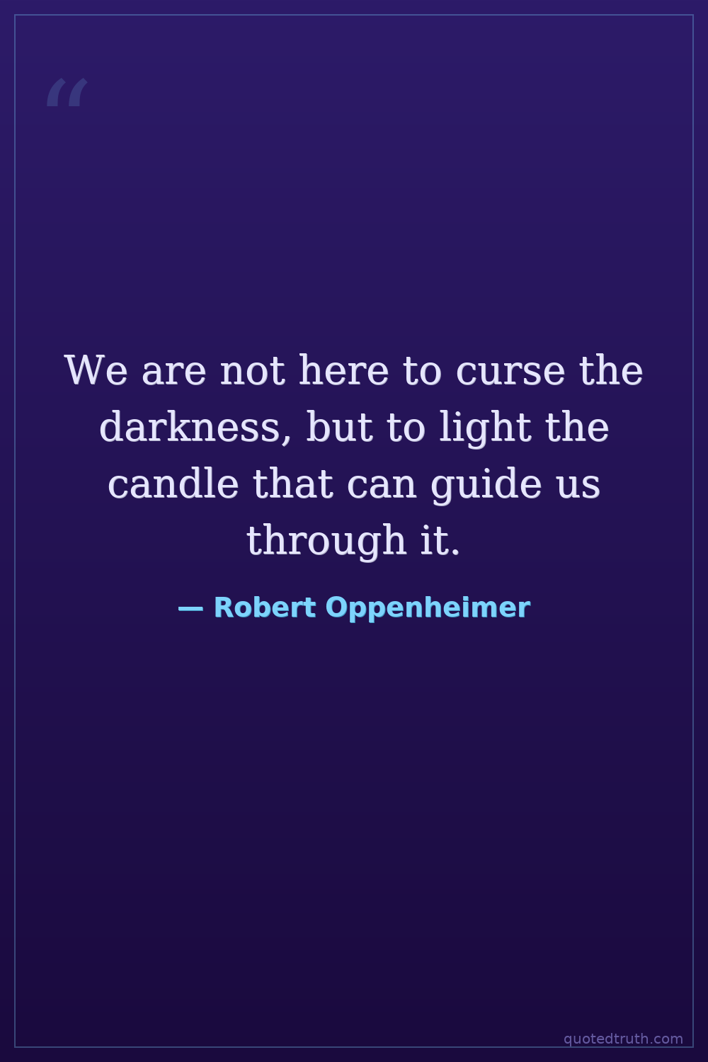 We are not here to curse the darkness, but to light the candle that can guide us through it.