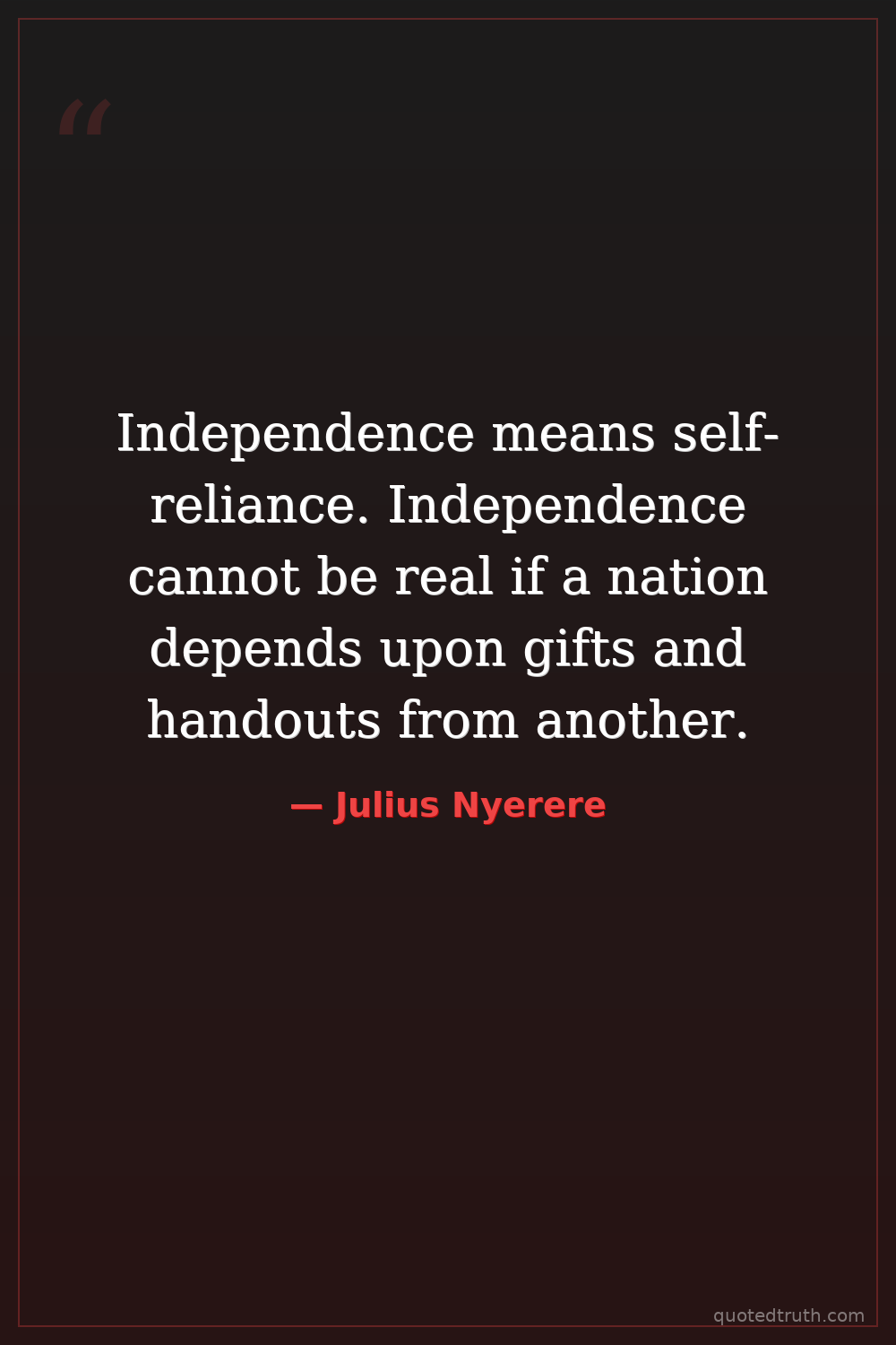 Independence means self-reliance. Independence cannot be real if a nation depends upon gifts and handouts from another.