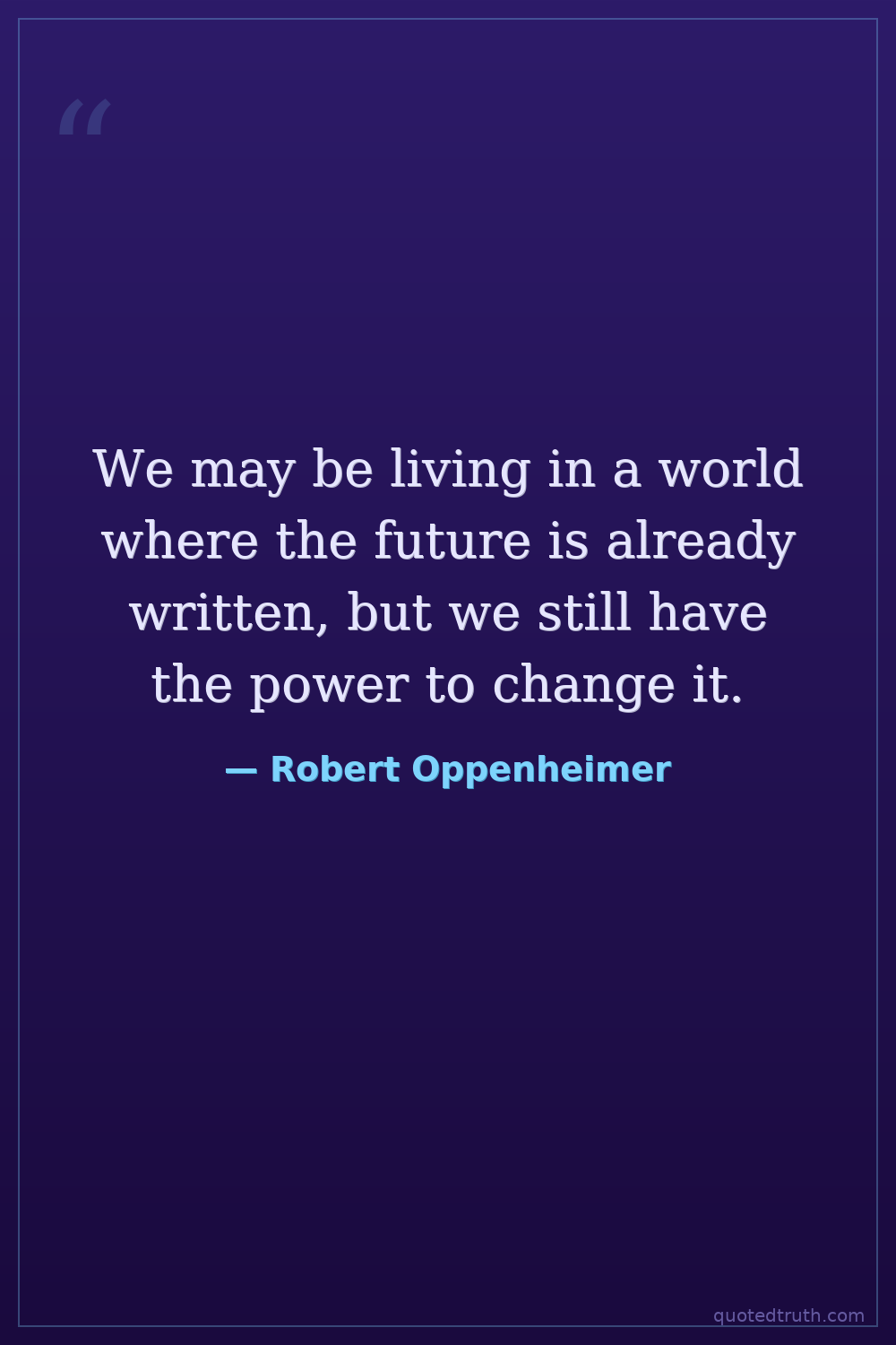 Controversial"The atomic bomb has taught us that we are not masters of our own destiny."
