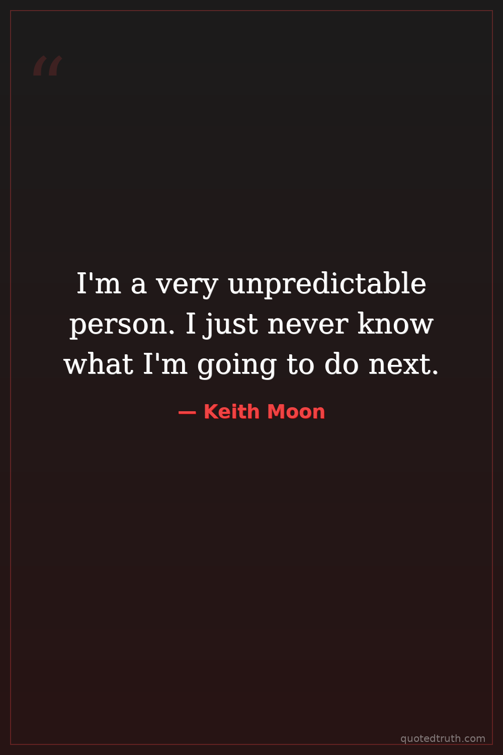 I'm a very unpredictable person. I just never know what I'm going to do next.
