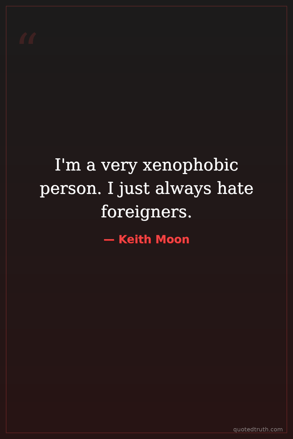 I'm a very xenophobic person. I just always hate foreigners.